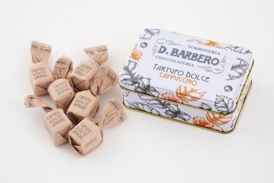 チョコレートの甘さとカプチーノの苦みが絶妙にマッチ。缶はシンプルで可愛らしく、後使いにも便利なサイズです。